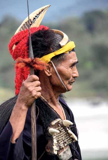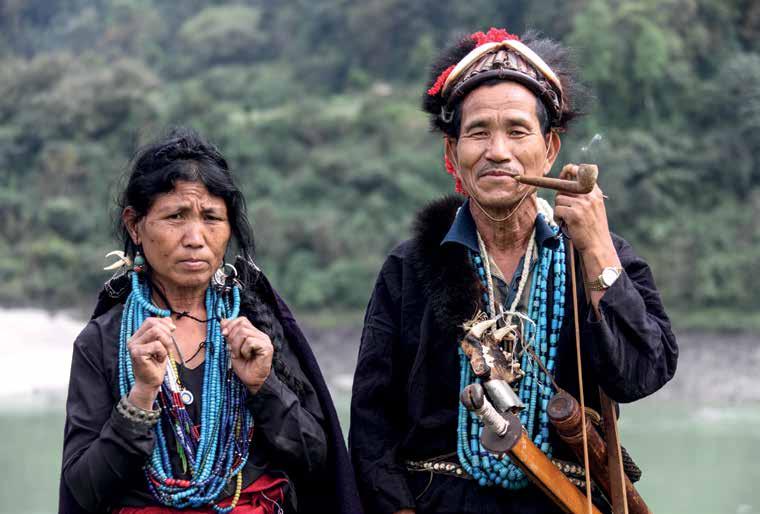 into the Chin and the Arakan Yoma. Along the southern bank of the Brahmaputra River are the east-west aligned Jaintia, Khasi and Garo Hills that make up the state of Meghalaya, which in turn separate the river valley from the low-lying areas of Bangladesh to the immediate south. After India’s independence and the partition of the subcontinent, the resultant narrow tract of land, the Siliguri Corridor, or “Chicken’s Neck”, became a slender thread that acted as the sole gateway to the entire region, further extenuating its remoteness and defining its isolation. Once this narrow gap is traversed and the traveller journeys through Sikkim, part of northern West Bengal, Assam, Meghalaya, Arunachal Pradesh, Nagaland, Manipur, Tripura and Mizoram, this often unfamiliar part of the country steps forward in all its geophysical, anthropological and folkloric splendour.