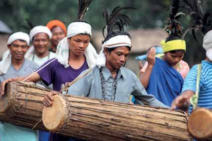 centre | Come October, the Garo Hills begin to reverberate to the sound of drumbeats that announce to the world the start of Wangala, the most important festival of the Garo people. Offerings are made to honour Misi Saljong, the god of fertility who presides over crops and controls the rain, water and growth of all things. Music flows from flutes, gongs and buffalo-horns and the village gathers together for seven days and nights of dance, feasting, rice-beer drinking and revelry.
