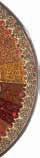 The plate is ornamented profusely with colourful geometric designs that are intricately carved.