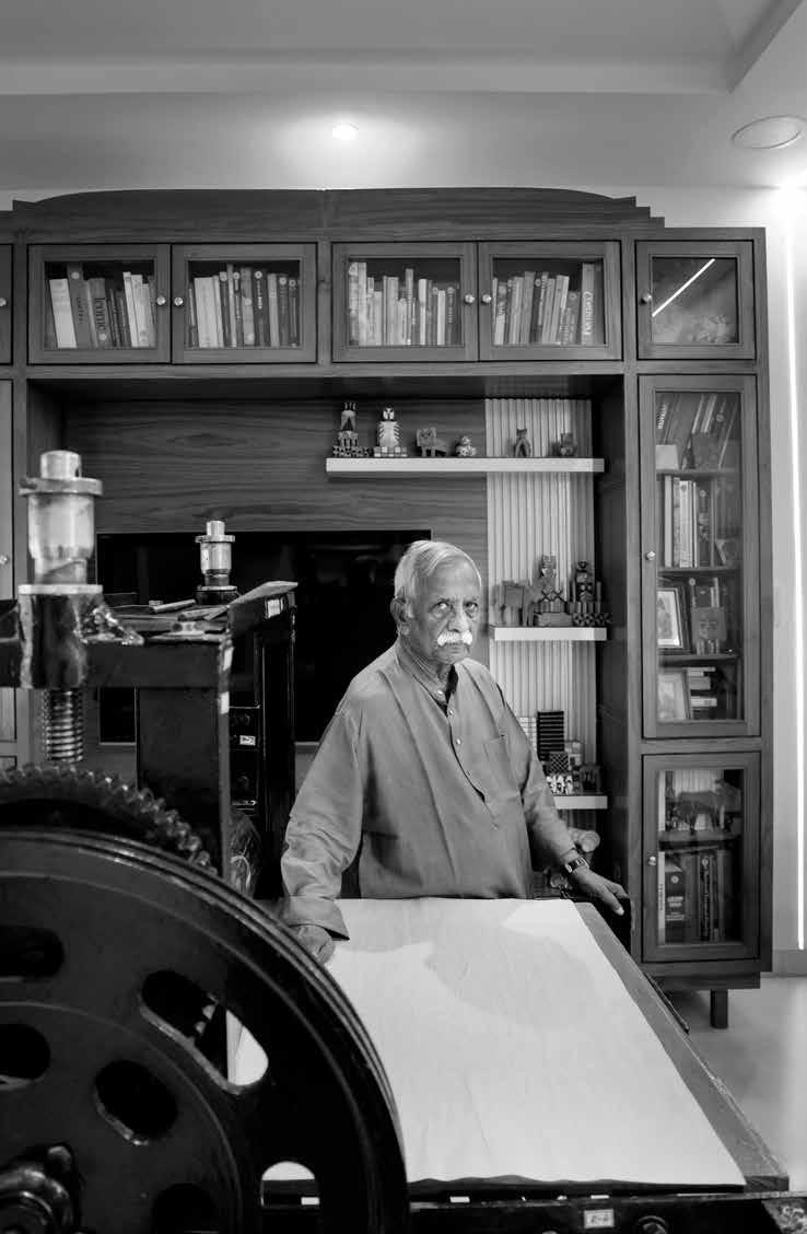 Ganeshda looks as cherubic as ever though his health isn’t what it used to be, and he no longer finds it convenient to use the firstfloor studio in his home. That studio is still surrounded by treetops from where he enjoyed the sweeping views it commanded, though a building opposite has now obscured part of it. He would listen to music, though the music system too has broken down, now. But none of it matters, he explains, because he doesn’t have the strength to paint from upstairs any more.