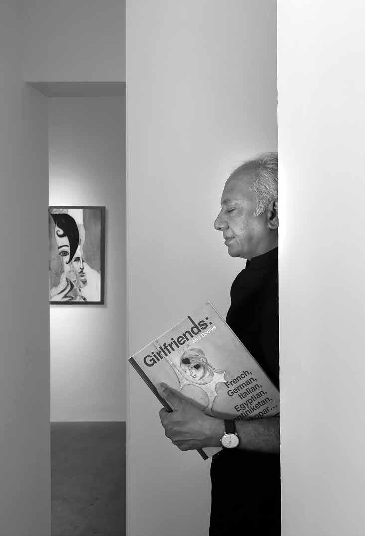 Amitbhai’s Ahmedabad home has been featured in design and architectural magazines for his collection of antiques and pichwais, the latter acquired from his many visits to Nathdwara, the pilgrimage town in nearby Rajasthan. They appeal to him for their concept of leela, the cosmic drama of the divine as something playful and joyful. Amitbhai’s paintings don’t draw a direct correlation from them, but they tend to be colourful, playful, and deal with direct expressions. An octogenarian, he now spends a half day in the studio, doodling when he isn’t painting, leafing through books when he isn’t drawing, wondering how to solve his painterly problems by looking at the works of miniature artists.