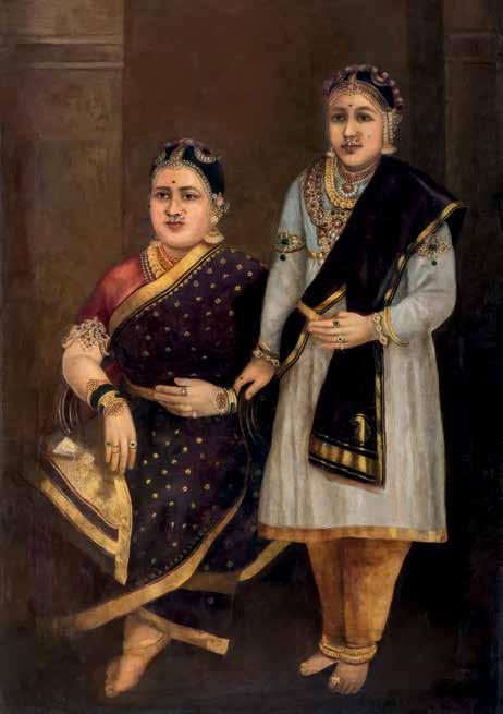I am much obliged to the late Maharani Karthika Thirunal Lakshmi Bayi of Travancore, her brother, the erstwhile Maharaja Sri Padmanabha Martanda Varma, (great-grandchildren of Ravi Varma) and Karthika Thirunal Lakshmi Bayi’s daughters, Princess Gouri Parvathi Bayi and Princess Gouri Lakshmi Bayi, of the erstwhile Travancore royal family, for allowing me to photograph their formidable collection. (It was Rukmini Varma who related to me, while in Bangalore, the anecdote about the brocaded fabric gifted to Ravi Varma by the Maharaja of Mysore, later made into the wedding skirt for Rukmini’s grandmother; and it was Gouri Parvathi Bayi who showed me the wedding photograph reproduced in Chapter 1. I am thankful to Hormese Tarakkan, the former DGP of Kerala, and K. Jayakumar, (IAS) for introducing me to Gouri Parvathi Bayi and for making it possible to meet the family at Kaudiar Palace.