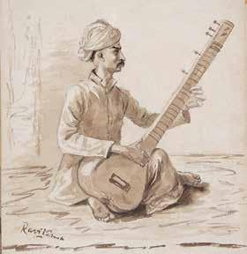 A drawing of a musician from Ravi Varma's sketchbook