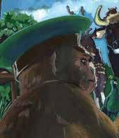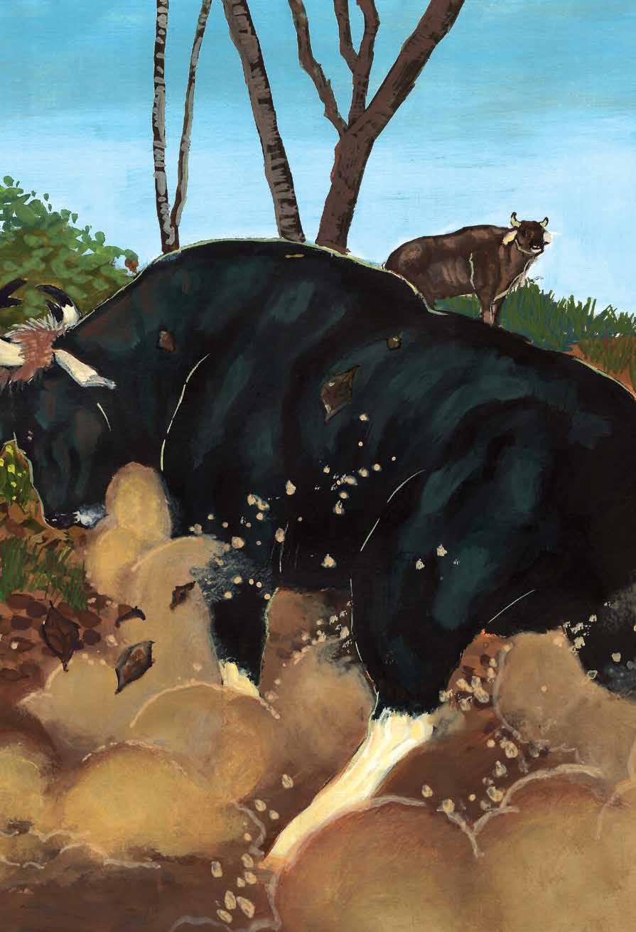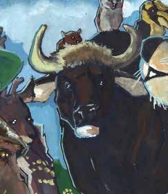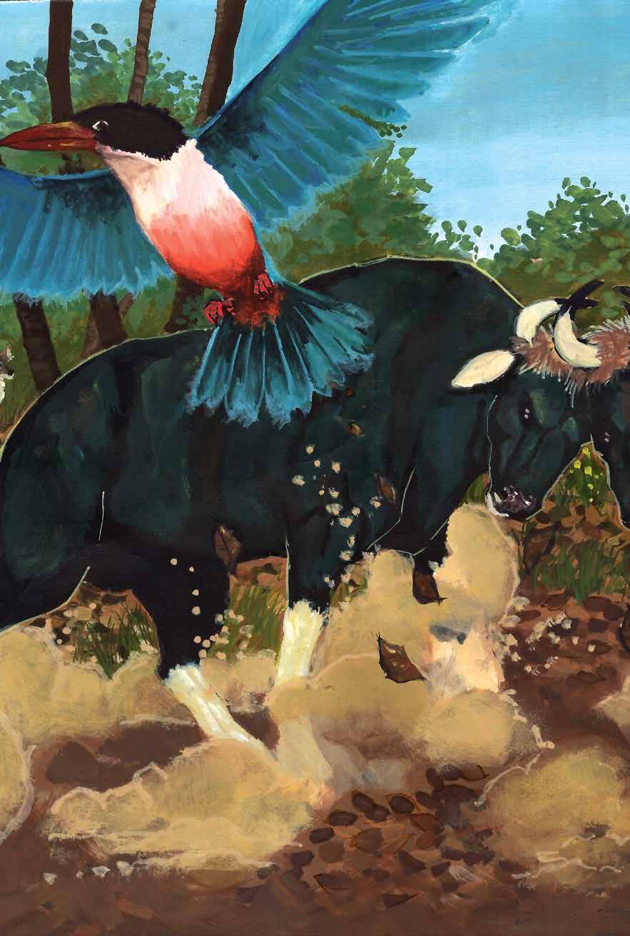 The branches of trees cracked angrily and two bison – best friends Nanda and Nandu – burst forth. Large and heavy, their coats were so black, they looked blue. Their curved horns interlocked in mortal combat. The earth shook with their weight and the half-asleep junglebodies were all rudely awakened.