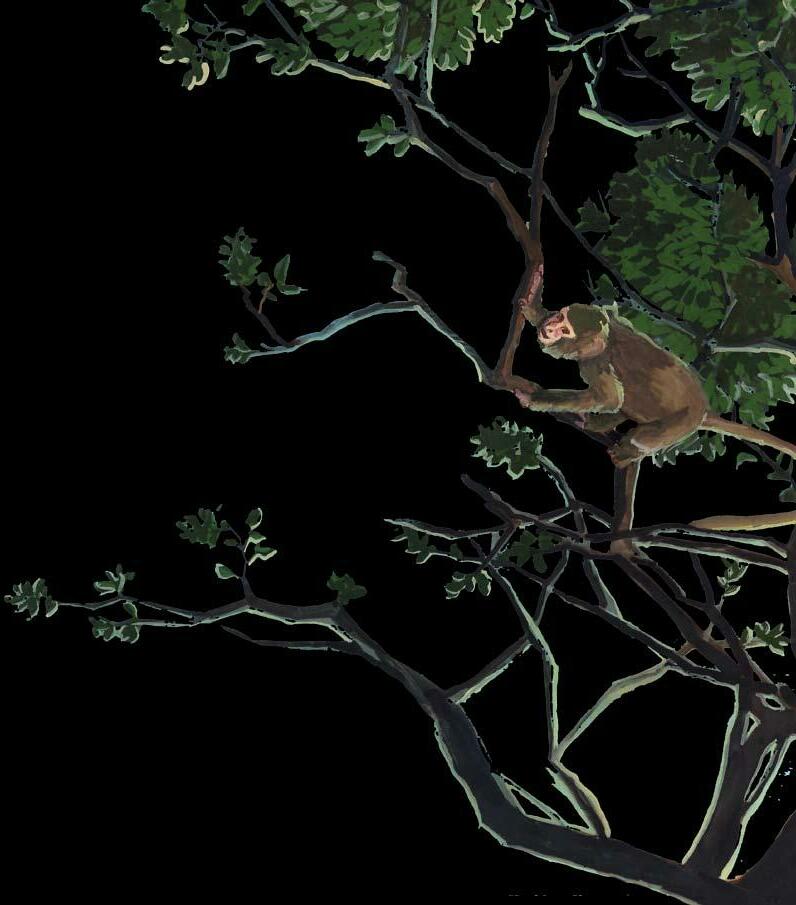 ‘Catch me if you can,’ Lil Squi dared Manu and disappeared into the giant bodhi tree. Manu followed. He grabbed hold of one of the tree’s countless hoary whiskers that reached down to the ground and gave chase, chattering to himself.