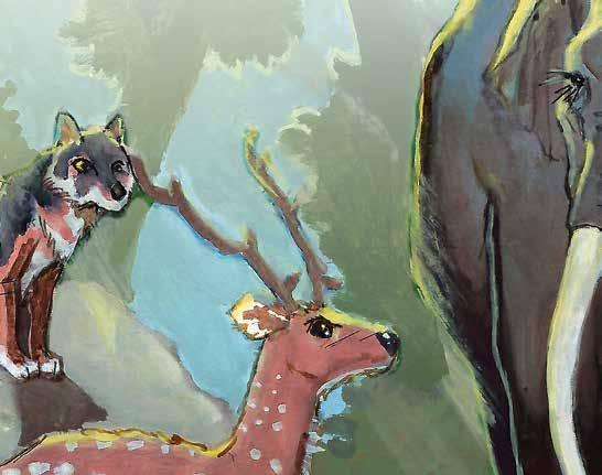 And while other jungle beings were doing all sorts of other jungle things, Giddar, the discursive jackal was engaged in a discussion of a serious nature with the pragmatic Loombar, the know-it-all fox. They had an attentive audience. Twitchynosed hare, Khargosh, and his wobbly-headed friend Kurma the tortoise listened raptly from the carpet of grass. As did the grey squirrel with three white stripes, Lil Squi; and the red-breasted green parrot with a yellow hooked beak, Tota. Up on a jacaranda tree, they listened with pricked ears.