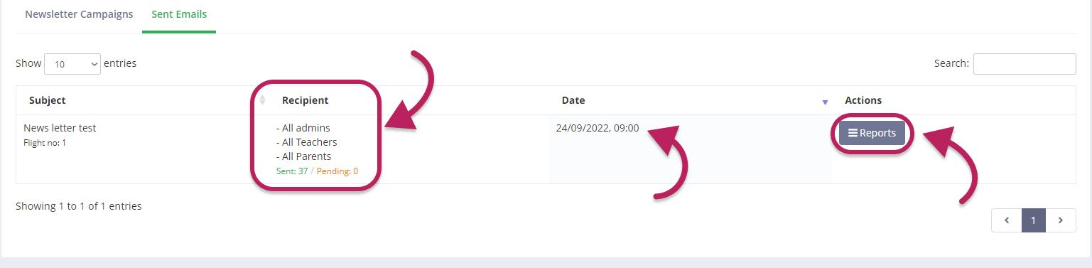 • Next to each record, you will be able to see the recipients and how many emails have been sent.