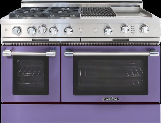 Everything the Classic is made of and then some, the Grand Chef Range oven is equipped with professionallevel features even the most discerning chefs would be surprised by. As a precision self-cleaning oven, the Grand Chef Range boasts a powerful 18,000 BTU oversized infrared glass-surfaced broiler that allows for extremely high heat capabilities. The Rotomatic™ integrated oven rotisserie system makes for the ultimate slow-roasting experience, while the smooth ball-bearing technology of our EZ-Glide™ oven racks lets you move even the heaviest casserole dishes with ease. Capital’s 48” and 60” models include a second companion oven for increased cooking possibilities. Enhanced by an elegant Titanium speck porcelain interior, dual high-heat halogen lights, and extra large viewing windows, the Grand Chef Range’s oven is the masterpiece that even your favorite local chef would envy.