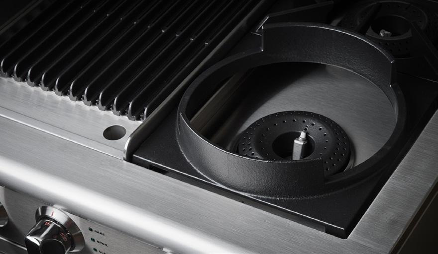 • Porcelain-Coated Cast Iron Grates with Center Bridge Grate Provide a Continuous Cooking Surface