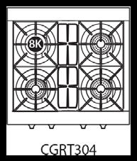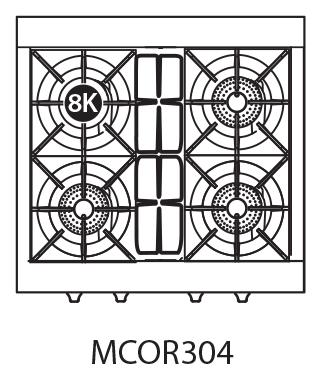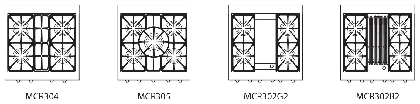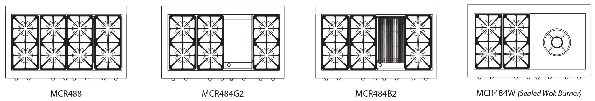 • Four Accu-Heat™ Sealed Brass Burners Rated at 19,000 BTUs Each, Creating Powerfully Consistent Heat (Additional 25,000 BTUs Sealed Center Burner on the MCR305 Model)
