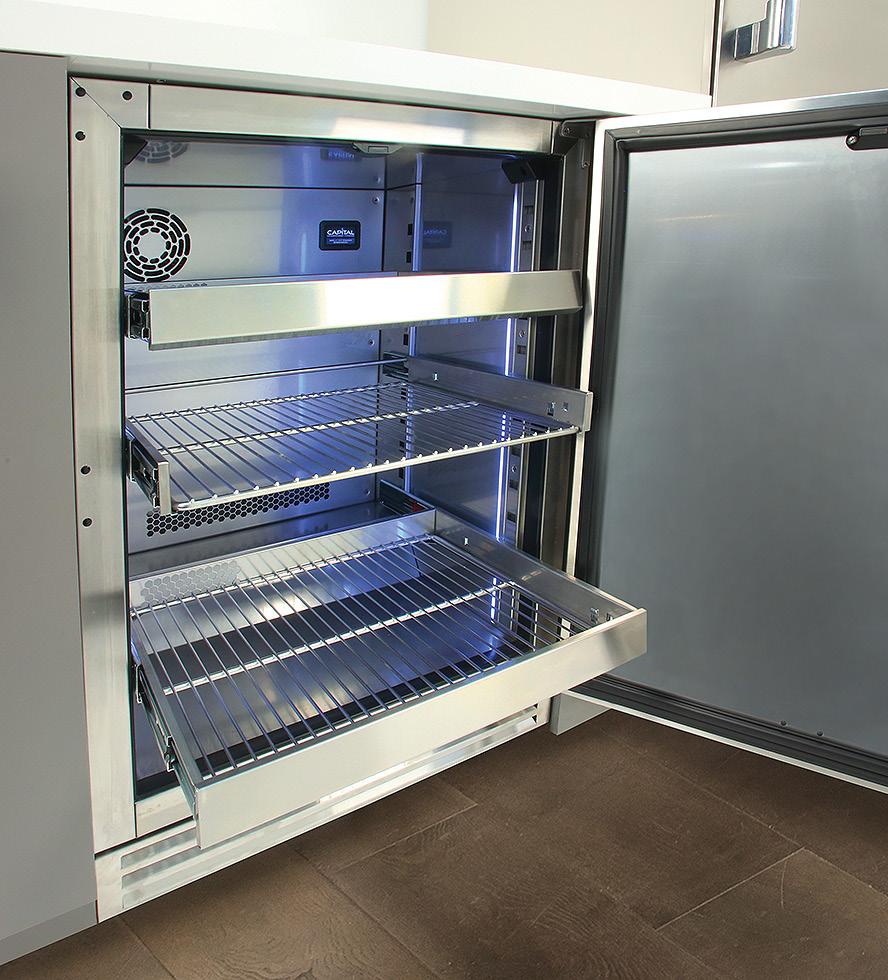 Nesting seamlessly into a pullout drawer on roller bearings, the Capital Chef’s Collection drip trays make cleanup a breeze with a smooth stainless steel surface that allows for quick wipe-down after every use.