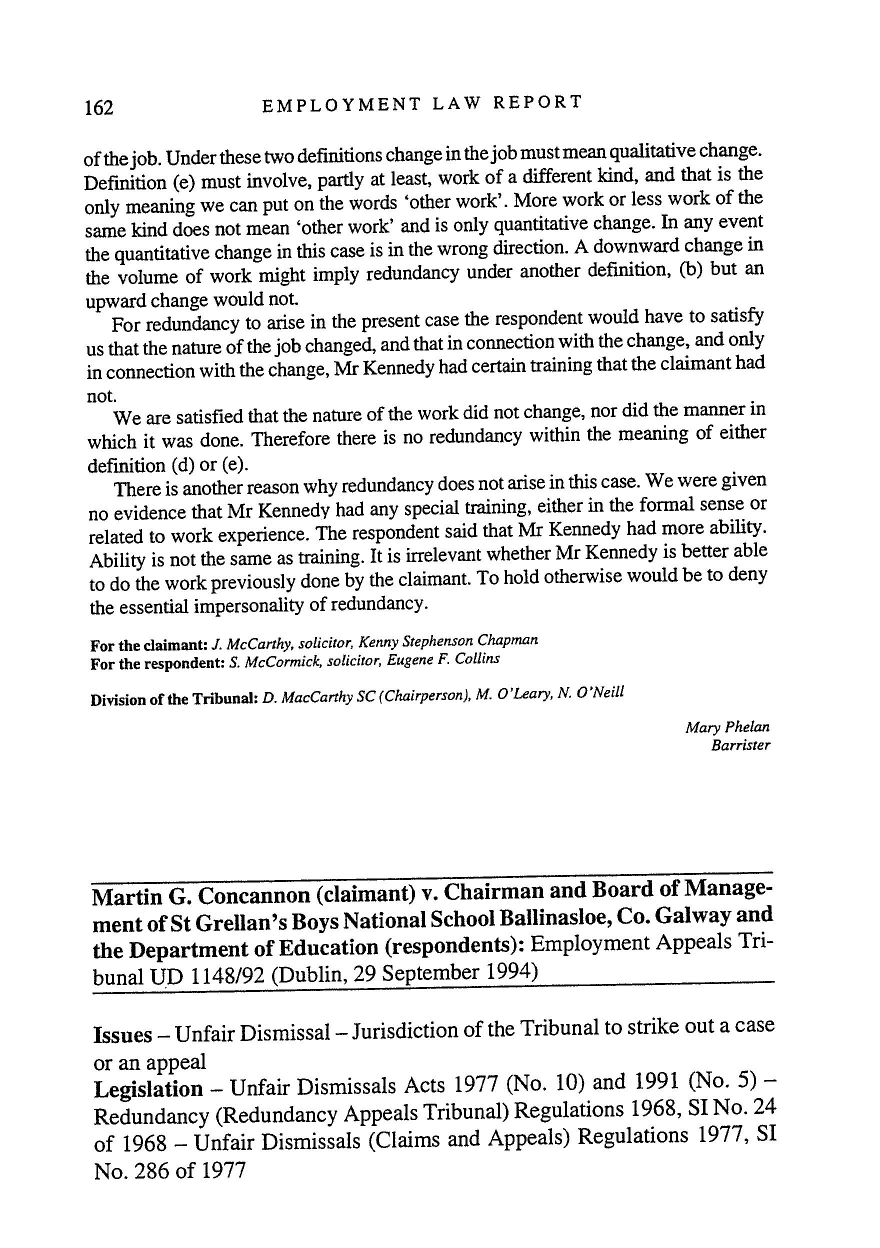 Barry St Leger v Frontline Distributors Ireland Limited 1995 E.L.R. 160