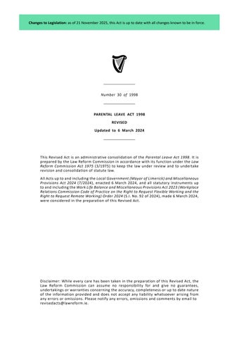• Parental Leave Act 1998 (30/1998)