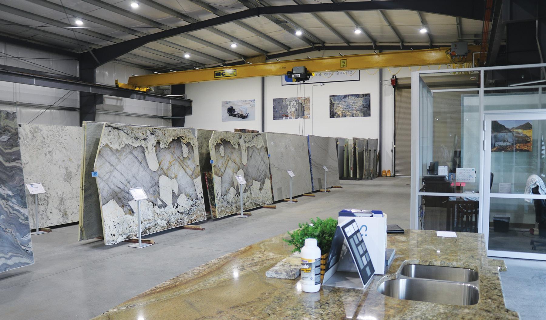 Those changes are almost always made specifically with efficiency in mind, which Alex says have made a noticeable difference in productivity. They include added staff and new equipment — including a crane at The Quarry that moves slabs of material from one end of the showroom to the other and an Italian-made saw in the shop that is a one-of-a-kind tool in the United States.