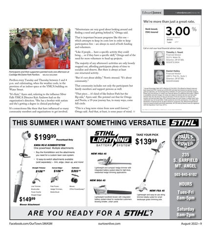 Pavilion every Tuesday and Thursday between 1 and 4 p.m. and culminating, when the weather cools, in the provision of an indoor space at the YMCA building on Water Street.