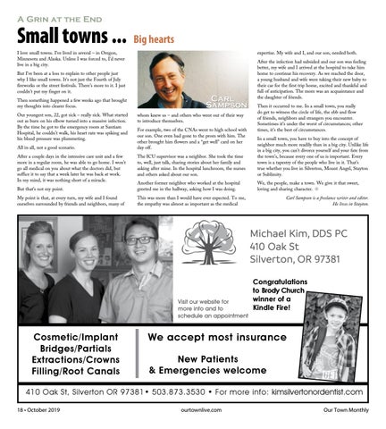 410 Oak St, Silverton OR 97381• 503.873.3530 • For more info: kimsilvertonordentist.com 18 • October 2019