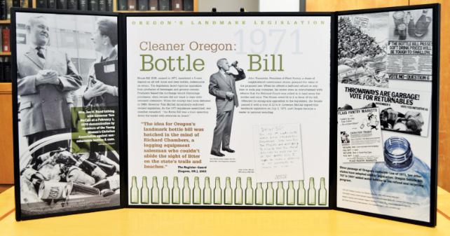 shaping the quality of life of its citizens,” reads a flier for the exhibit, called “Oregon’s Landmark Legislation.” “While Oregon’s innovations have evoked controversy, they have charted the course for other states and nations. This exhibit highlights groundbreaking legislation that Oregon has passed since statehood and includes legislation that focuses on environmental, social, and land use issues.”
