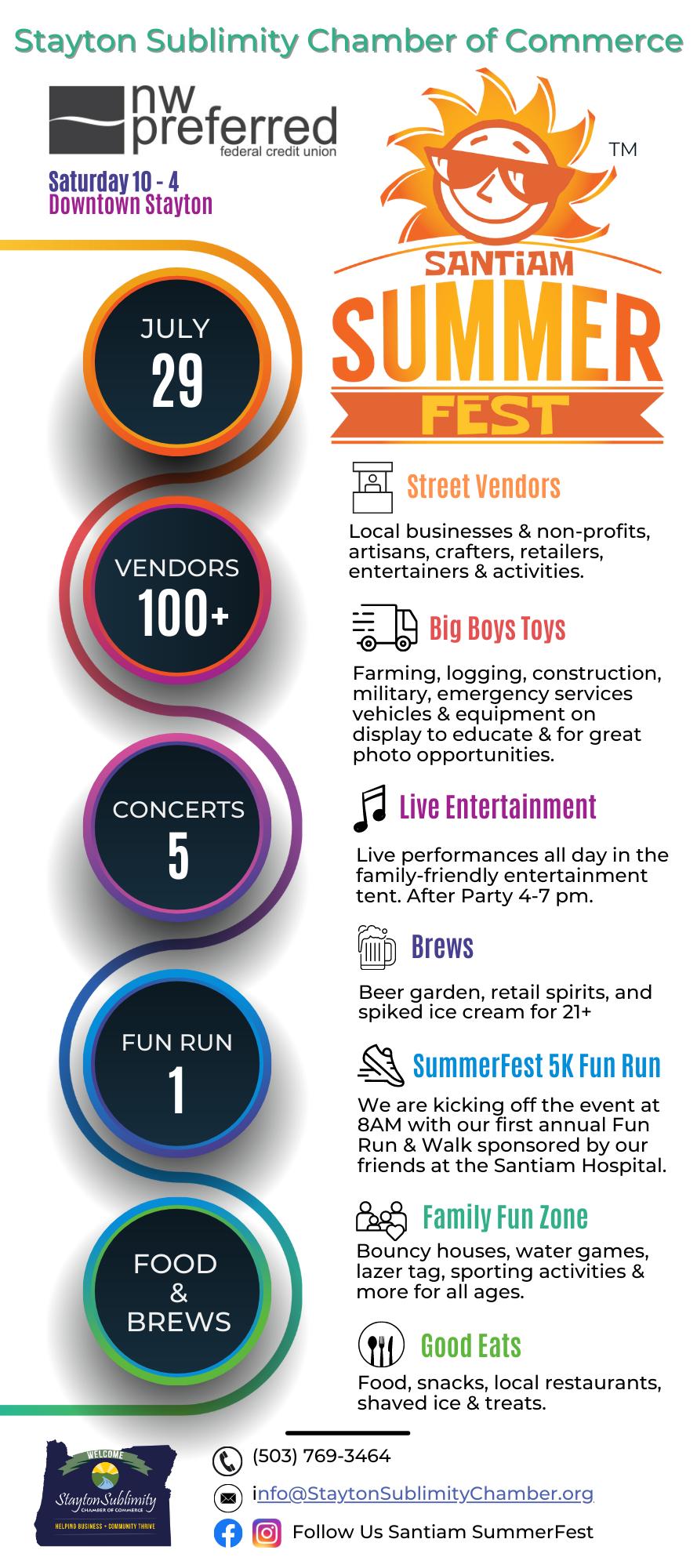 Vendor and food booth applications still are being taken. Email info@ StaytonSublimityChamber.org or call 503-769-3464.