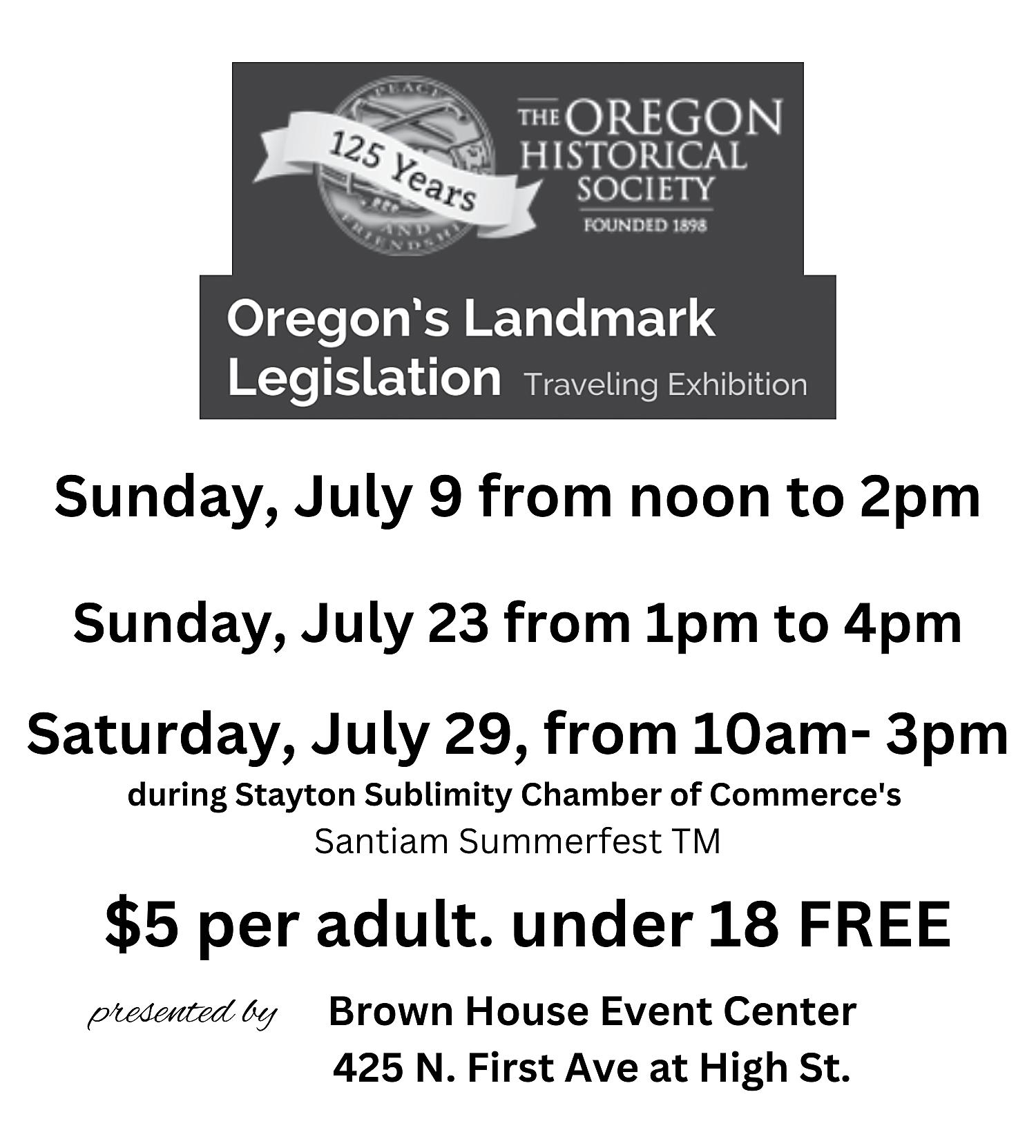 One of the exhibit panels for an Oregon Historical Society presentation on state legislative milestones. The exhibit will be available for viewing at the Brown House in Stayton on July 9, July 23 and July 29. OREGON HISTORICAL SOCIETY