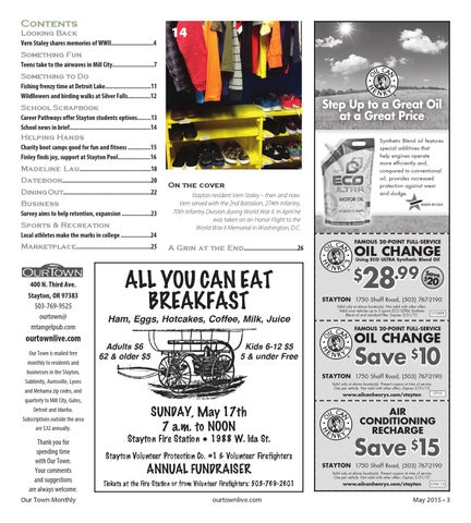 STAYTON 1750 Shaff Road, (503) 767-2190 Valid only at above location(s). Present coupon at time of service. One per vehicle. Not valid with other offers. Expires 5/31/15. OT10