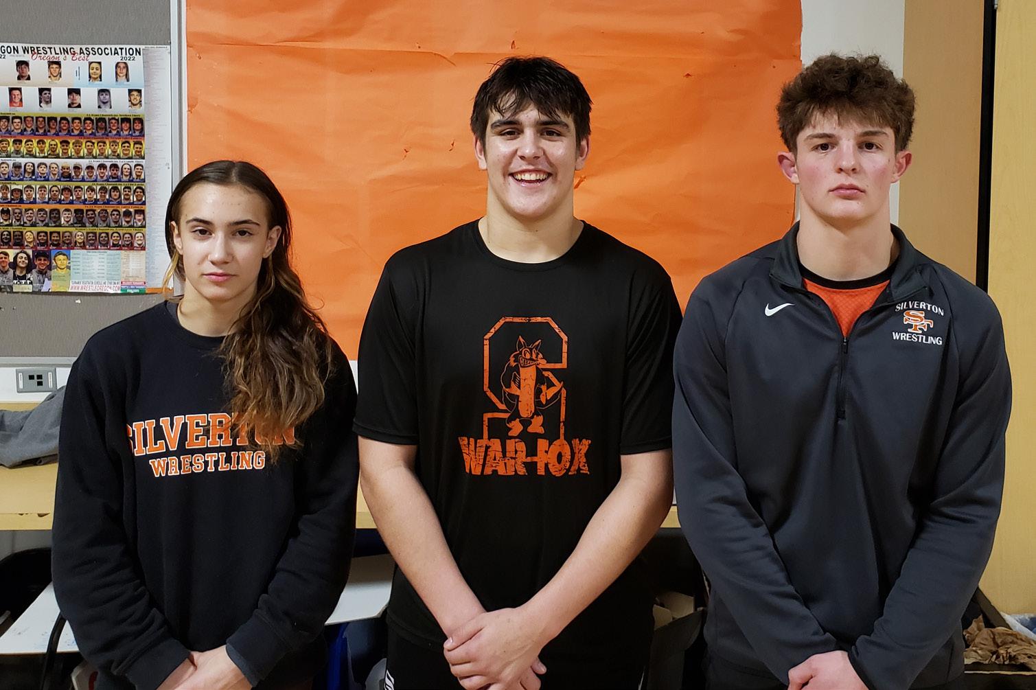 Silverton High wrestling’s female squad standout McKayla Bonham took second at the Mid-Wallemette Valley Conference; state first place holder for the fourth consecutive year, Brash Henderson; and Bo Zurcher, who took first in his class as well. JAMES DAY