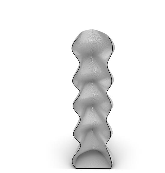 I show I designed the forms above. figure 1 represents the shell infill script running a gyroid shell, while figure 4 is showing the beam infill running dodecahedrom. As you can see from the images on page 11, using the number sliders that control the start and end of the domain allowed me to adjust the gradient or thickness of the beam and shell. This creates very intresting form,