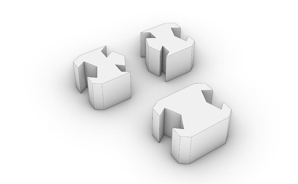 form that could be universally aggregated without gaps or need to worry about orientation. This would make construction and assembly much easier and create a better boundry. For these reasons I decided to look into other options. This exsperimentation was key to figure out the key apsects to my design.