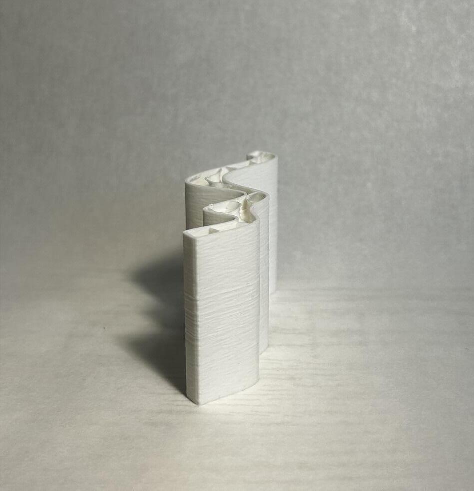 system. Although more symplistic this connection allows for a seamless joint with minimal gaps and resists from both lateral and vertical loads. The system as a whole printed very well without supports but I do think adding supports would have been beneficial.