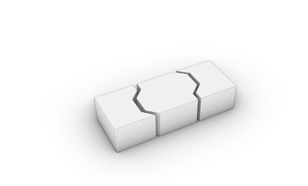 Once I landed on a final shape I began exploring the joinary between units. I started looking at a lock and key connection as seen in figure 1 and 2. This male and female connetion would allow for an easy assmbly, however, in practice these connections where prone to breaking and did not allow for a flush connect. For these reasons I switched to a mortise and tenon