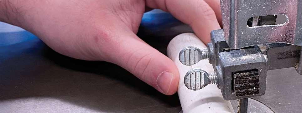 These images show the practice drill cuts I have conducted. The material pieces shown will not be included in my assembly, they simply serve as a draft exectution. In order to fit the misters into the pvc, I needed to have the drillbit dimension of 3/16” cut through one side of the pipe. As I mentioned in the previous page, I still need to drill into the manifolds I have created, but now I know the