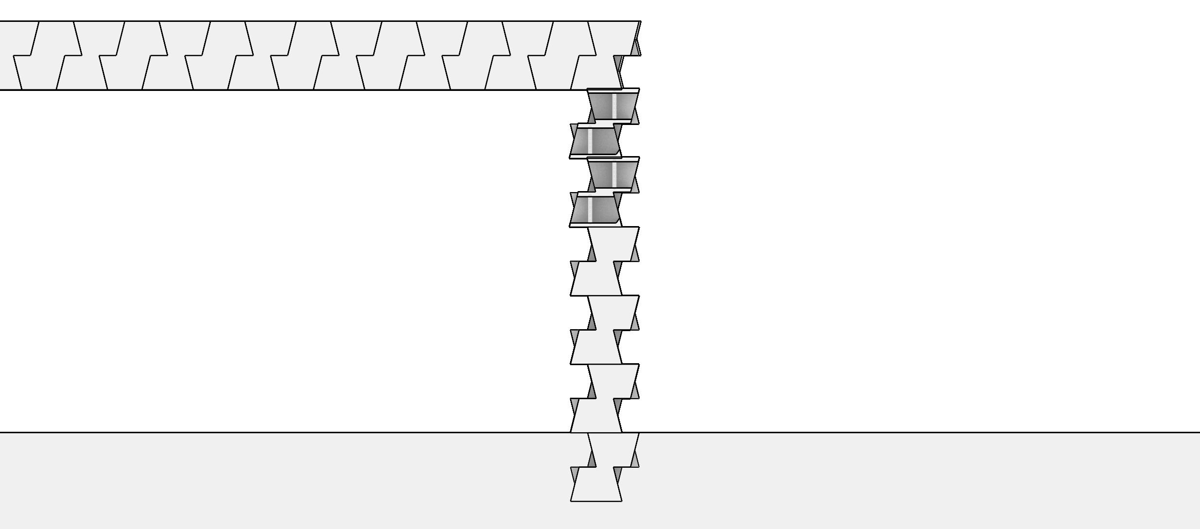 Pairing the aggregation’s capabilities with the size of each component, the 9”x2’ unit cavity would house the insulation and structural elements that would adequately provide for the residences it could create.