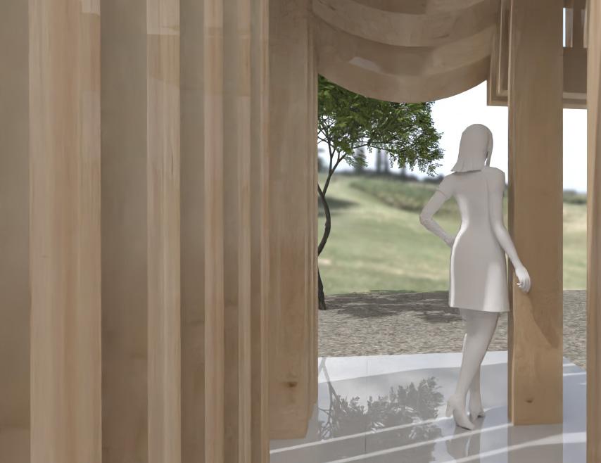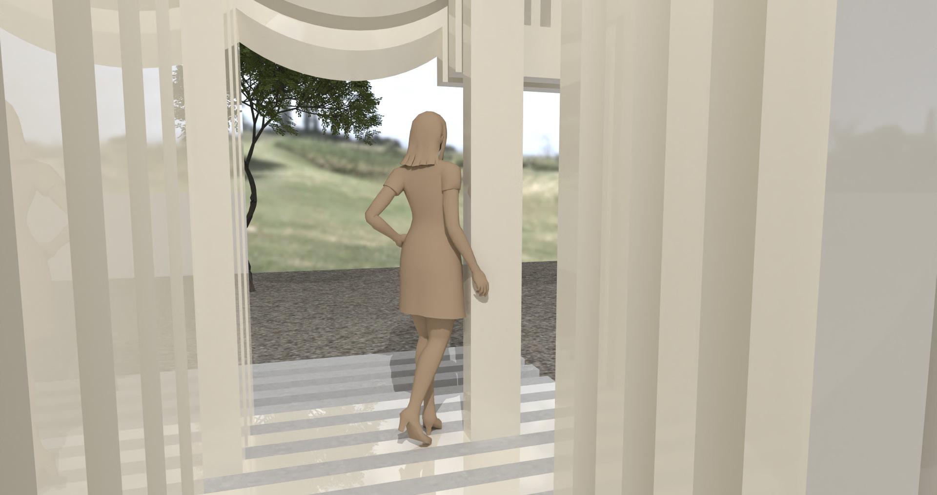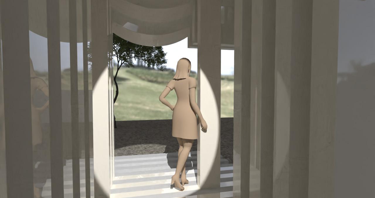 During the rendering process, I realized that the most difficult part of it all was finding a solid view of the space that captured all the elements I wanted to highlight. For my interior, I wanted to showcase the circular frames, the pillars,