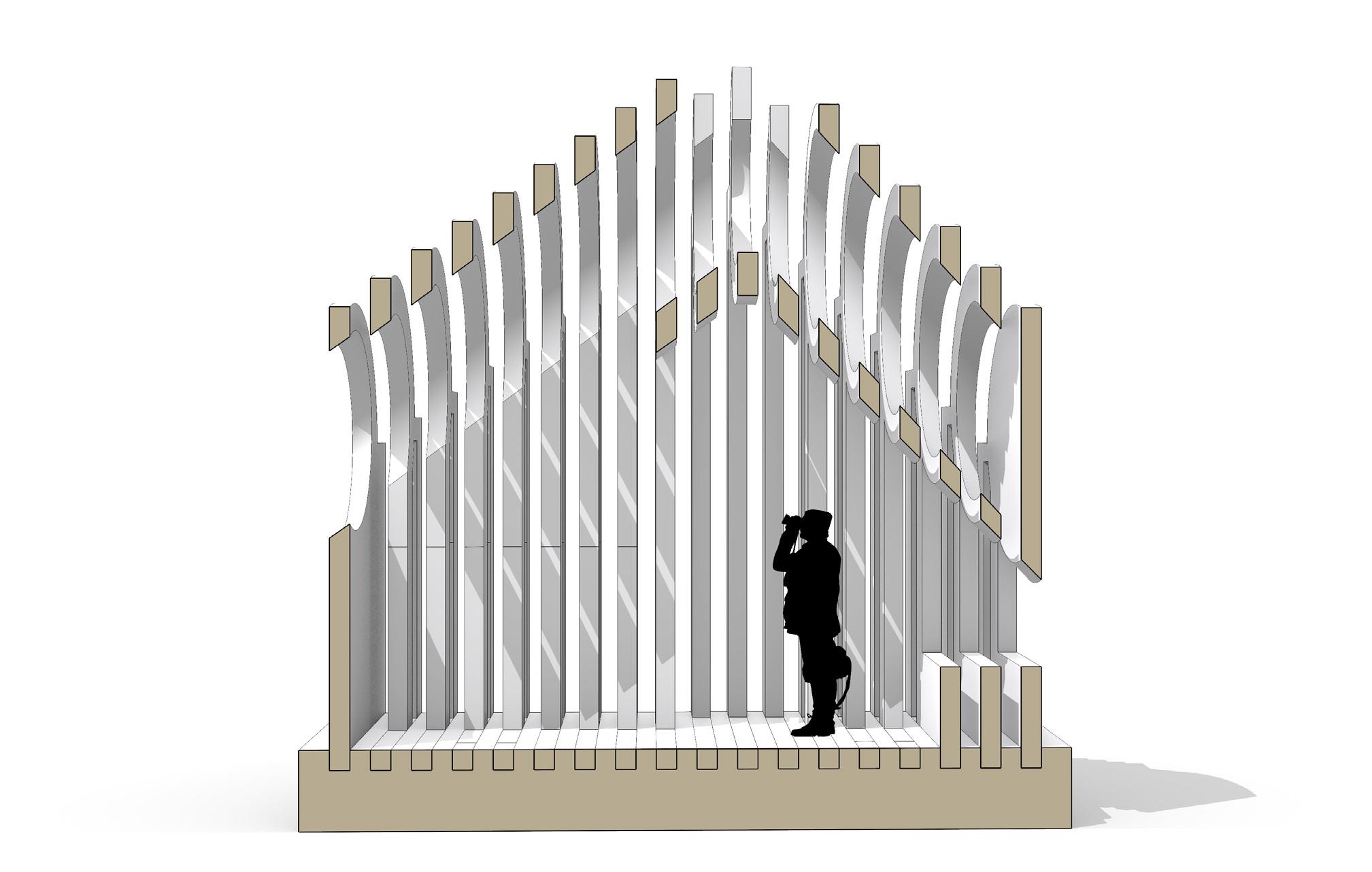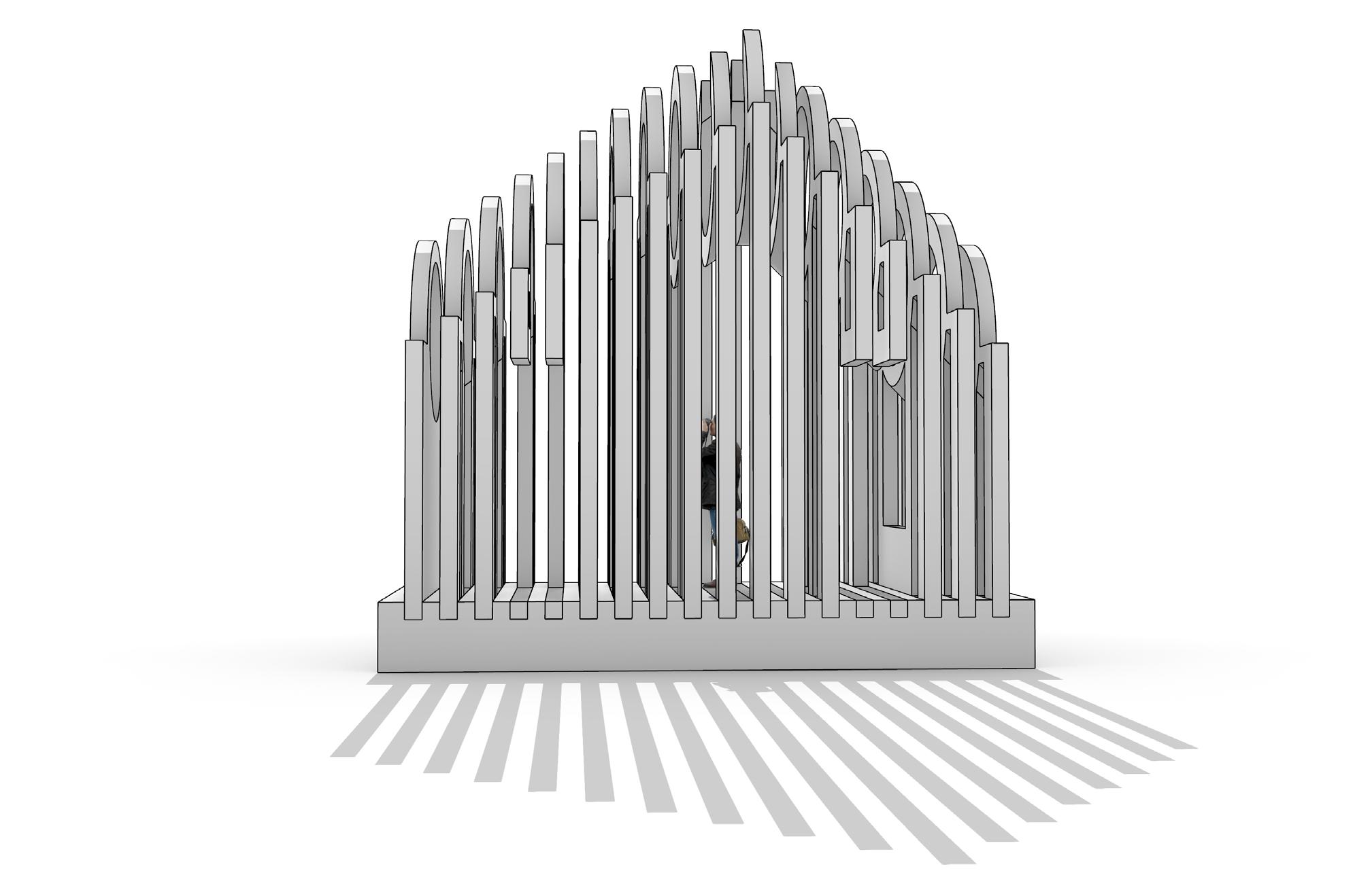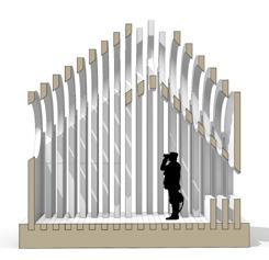 For this section of Module 3, we were instructed to create a space constructed of a series of vertical slats. These slats have been carved out to make an interior that demonstrates how light and other factors can interact with a building.