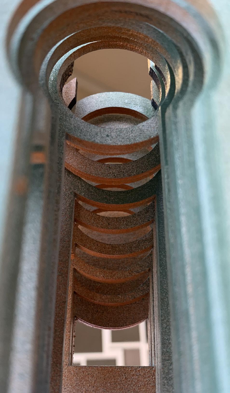the slats at once sped up the process. I slowly chipped away at the interior to create a space that I thought would be visually compelling when interacting with light.