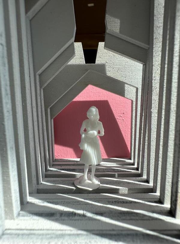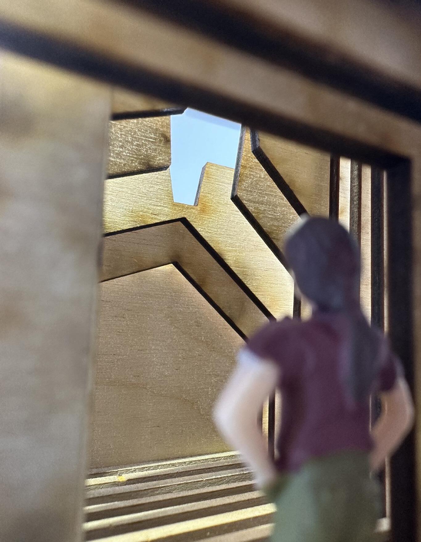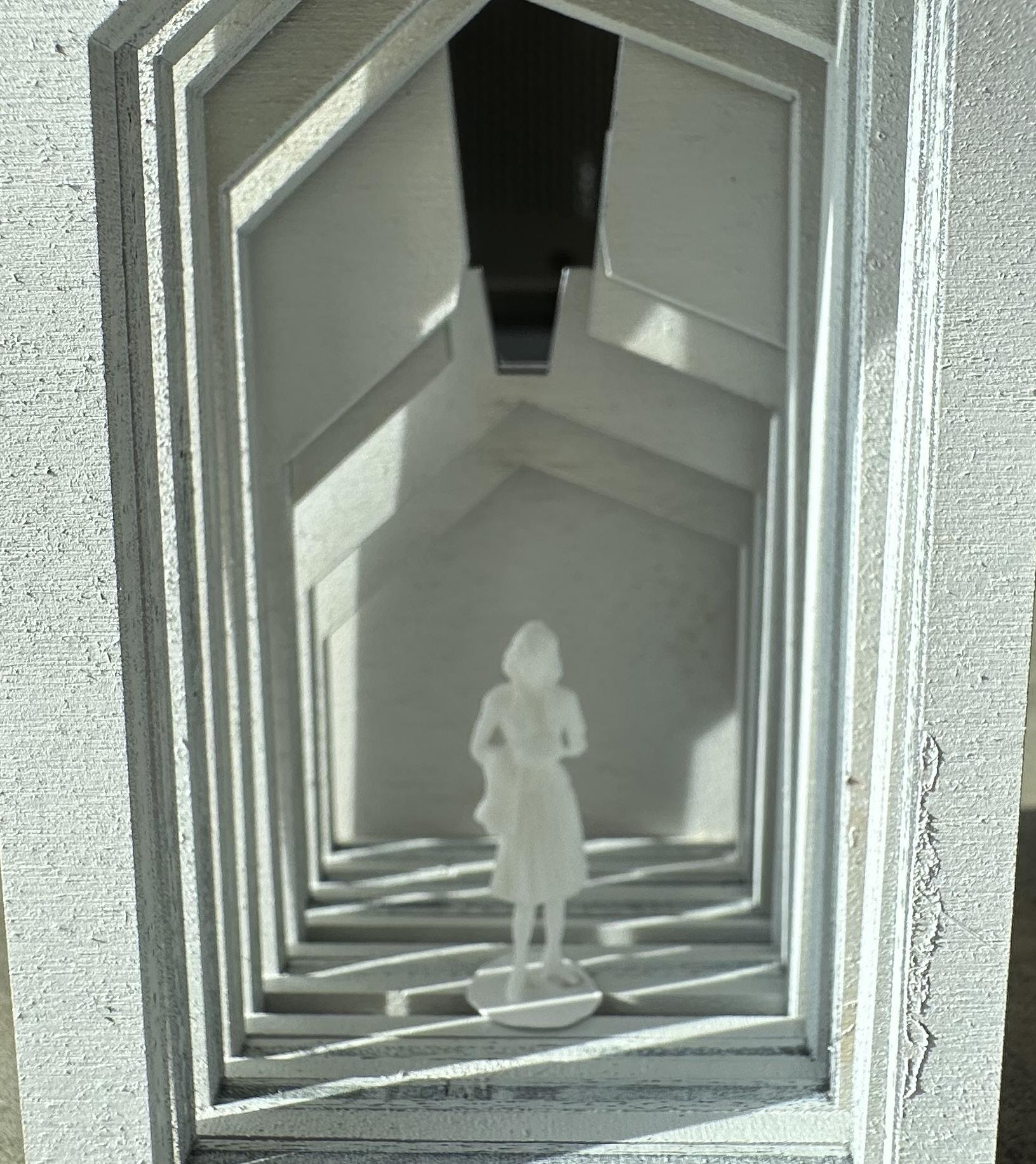 folding process. She debated a lot about the use of curved cuts versus straight cuts, but decided on straight because it gives a cleaner edge between the light and the paper.