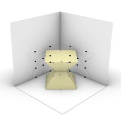 Back within Rhino, I projected the side views of the two primitives onto a wall, shown right. This became the fram of the enclsure.