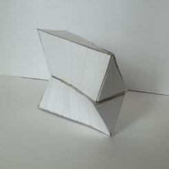 After laser cutting, using a toothpick and tacky glue, I folded the templated to create the two individualm primitives. The two them came together, the upper slidding into the lower, and they were glued aswell.