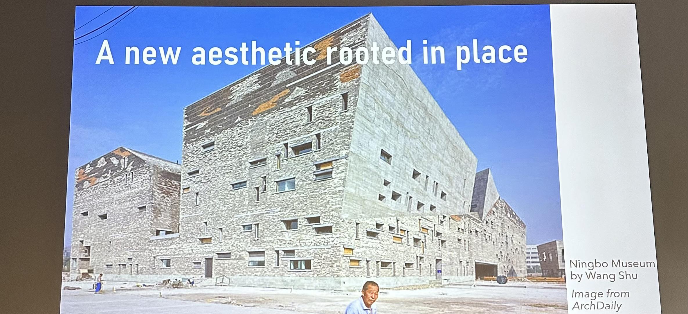 She talked about a building in China by Wang Shu, that used completely reused materials of the traditional buildings that stood there before. This project, similar to the