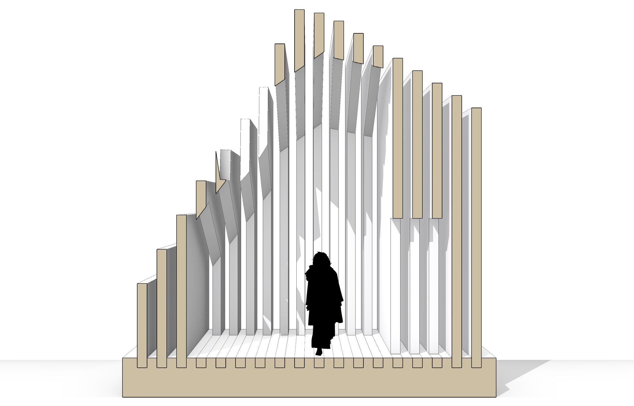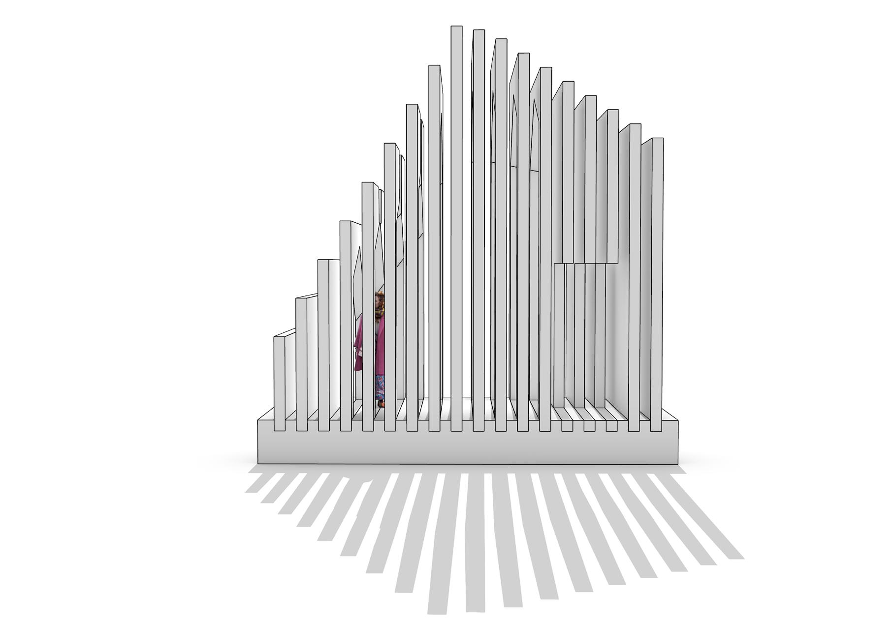 This project allowed us to created a silouette of a building and build it into panels. working in Rhino with panels allows us to create unique interiors using booleandifference.