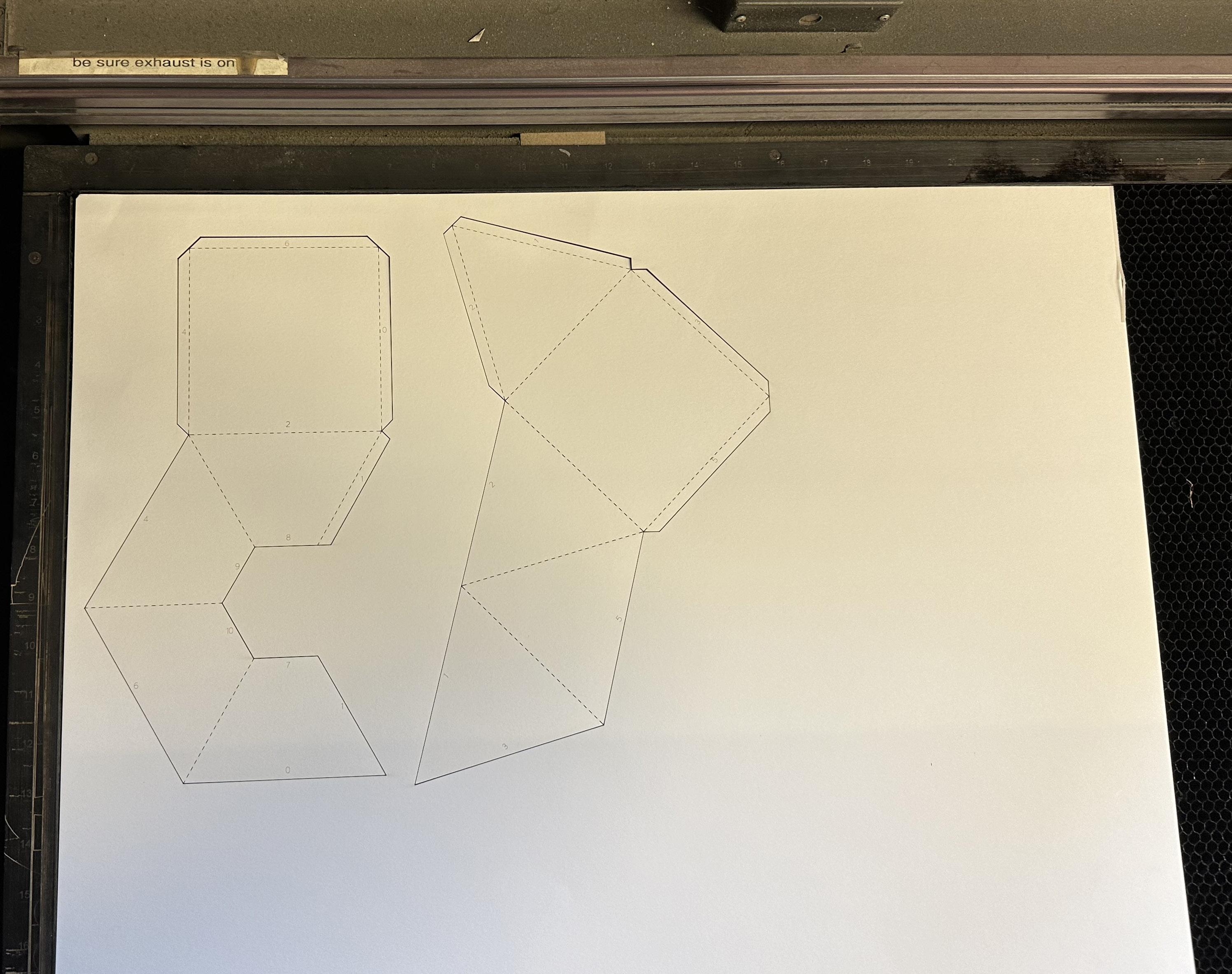 Adding tabs, numbers, and learning the color codded system that laser cut printers use finalized my templates. Using dashed red lines where you want to fold instead of cut, allows for a smoother and easier product.