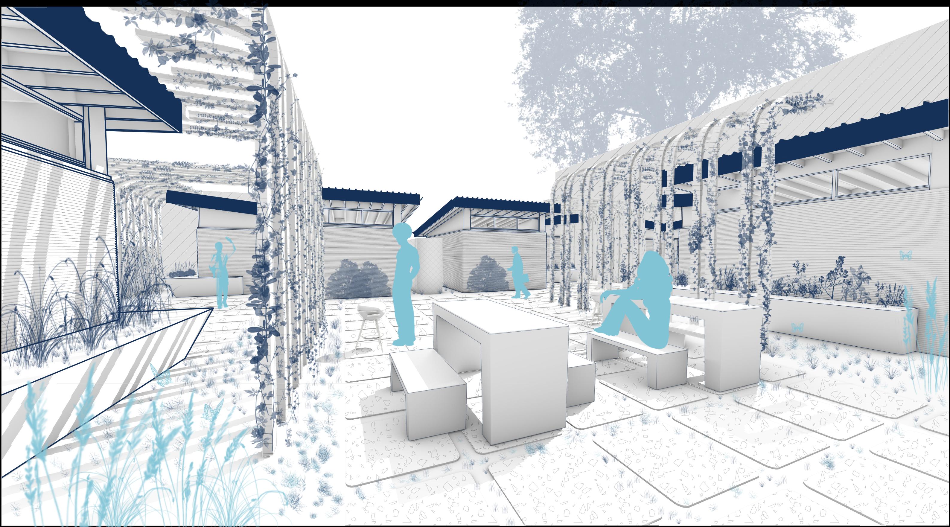 When the whole community gets involved, a nice path of circulation gets activated. Through this circulation path, many types of outdoor spaces are established. Including the large central gathering space designed for whole community use.
