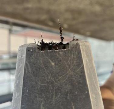 the planting pots are root, growth can be observed on the sides. However, uprooting and careful extraction from the substrate would be necessary for accurate root measurement and monitoring. The initial plan involved assessing the structural capabilities of the growth medium post-testing; due to time constraints, this could not be adequately tested. Upon completion of all testing, the results will be
