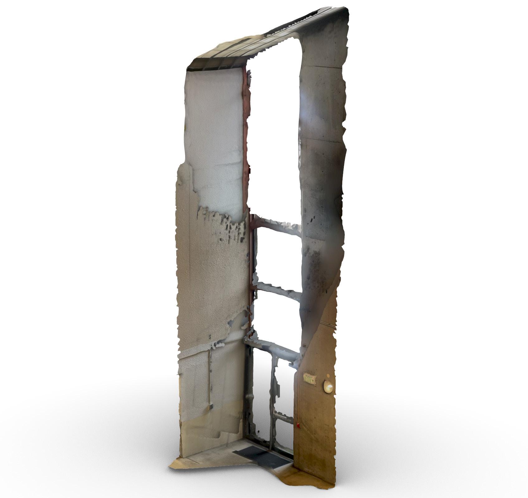 The image to the right is a lidar scan of this space, and the images on the right page is a photo & plan of the space.