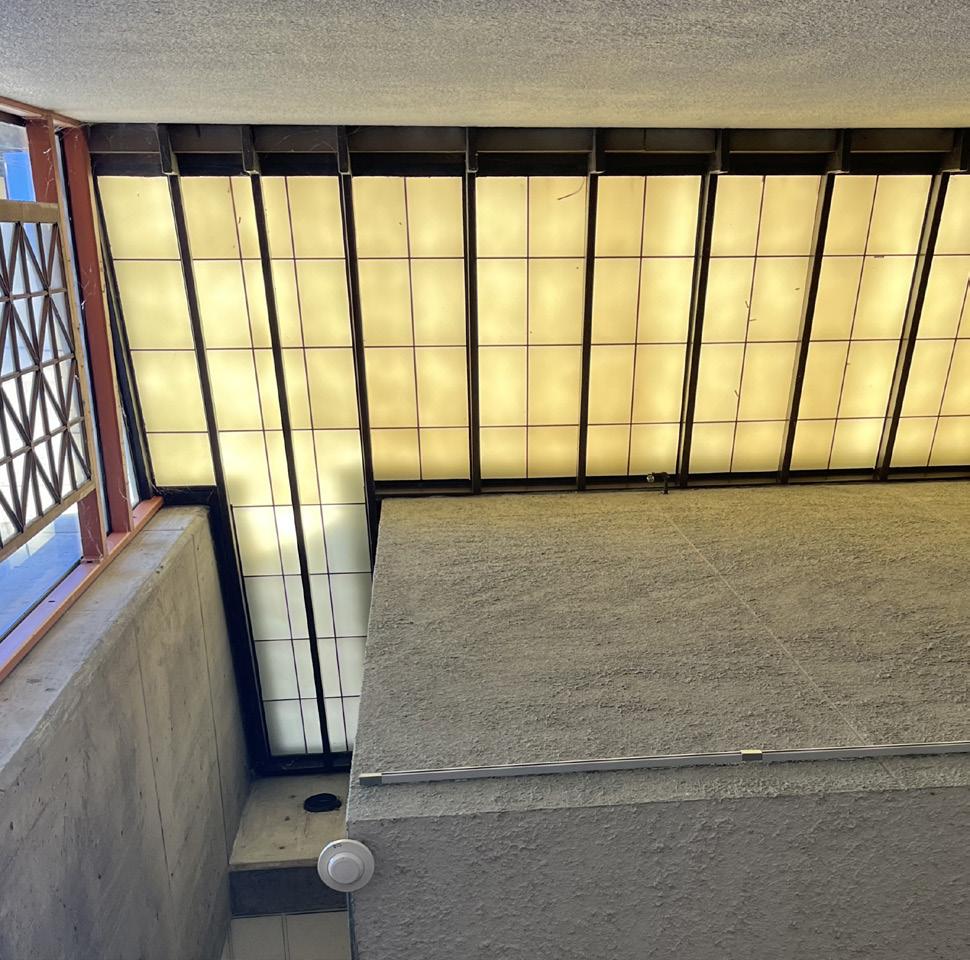have also connected the sprinker line, as a backup for when rainwater can’t supply sufficient water. This water is brought from the opposite wall, and runs across the skylight mullion to reach my scaffold.