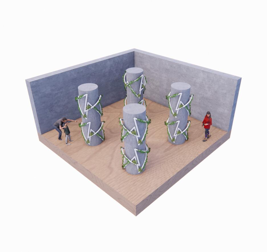 If I were to do this again I would likely also explore expanding my living system outside of the narrow piece of wall that it occupies, so that it can overhang over the doorway that is directly adjacent to my living wall system. I would also explore using different species, because the time that I spent researching plant species is limited and I could’ve investigated other options. Another thing that would be interesting to explore would be design variations, such as the column design variation I explored and the ceiling fixture variation.