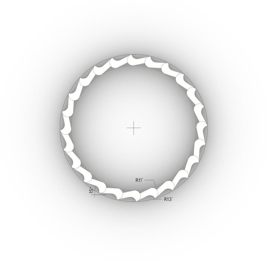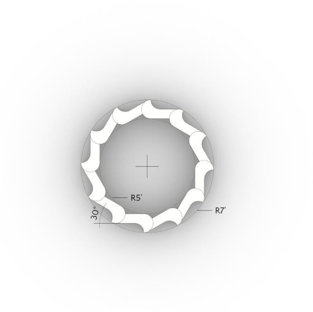 1/2” quarter arch at bottom Connect top bottom with 1” line left + right