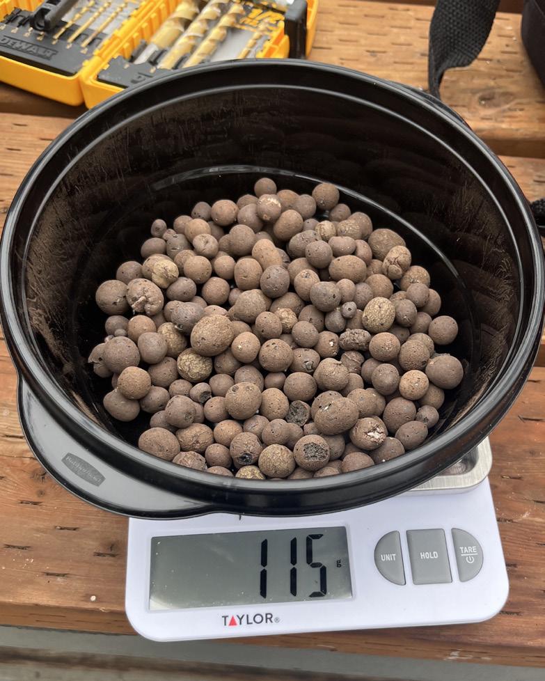 2.) Add expanded clay balls (ECB) to each tray. Add enough so balls are resting on one another and not floating above water (approx. 250 grams).