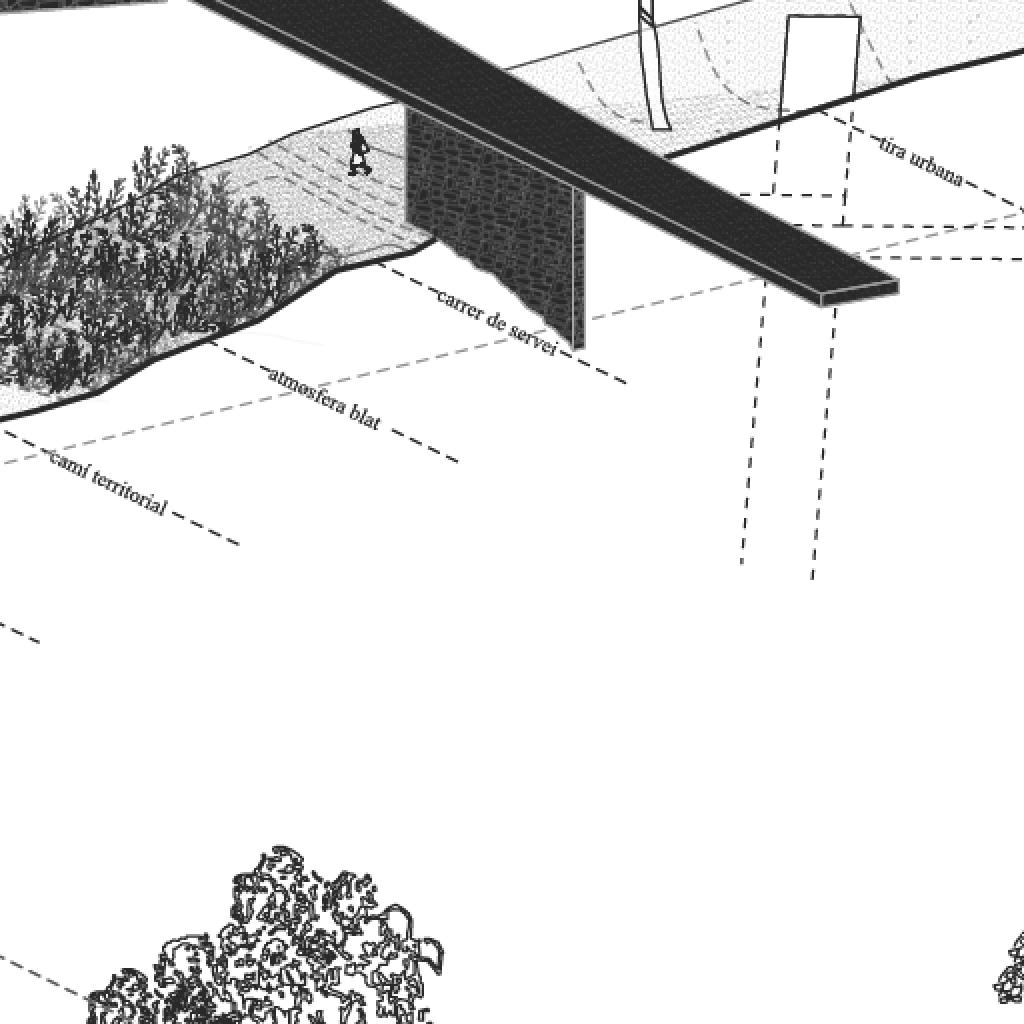Se propone un espacio público centrado en un camino rural, conectado con los espacios protegidos de interés natural del entorno del municipio, que a través de taludes, vegetación y recorridos peatonales generen atmosferas de escapada dentro de la ciudad.