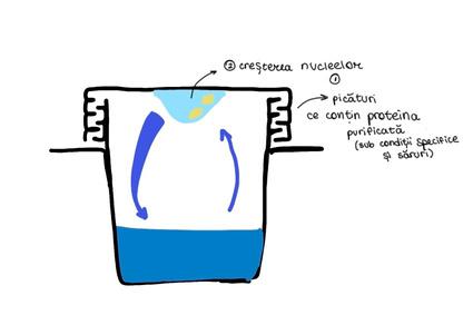 Pe Pământ, gravitația provoacă curenți de convecție care pot perturba formarea cristalelor de proteine, provocând temperaturi inegale și gradienți de concentrație. În microgravitație, nu există convecție, ceea ce poate permite o creștere mai uniformă a cristalelor de proteine. Așadar, vom folosi cristalizarea micro-gravitațională.