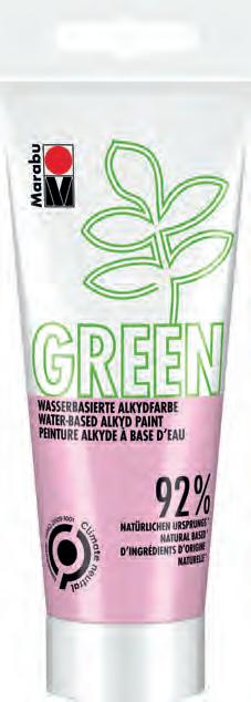 GREEN ist das neue wasserbasierte Farbsystem von Marabu. Die wasserbasierte Alkydfarbe mit Rohstoffen auf Pflanzenölbasis ist eine echte Alternative für Kunst- und Hobbyprojekte. Die vegane Farbe besteht zu *mindestens 92% aus Rohstoffen natürlichen Ursprungs (inkl. Wasser und Stoffen aus nachwachsenden Rohstoffen). Die Farbe ist klimaneutral und in Deutschland nachhaltig produziert. Die Farbeigenschaften sind für Künstler auf Leinwand sowie für den kreativen Hobbyanwender auf unterschiedlichsten Untergründen eine echte Bereicherung. Mit unserer GREEN gehen wir von Marabu einen Schritt weiter in eine bewusste Zukunft.